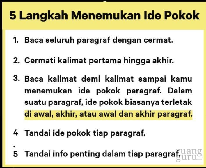 Ide pokok memiliki ciri utama yakni terdapat pada .